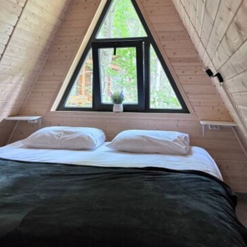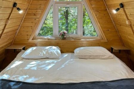 В живописном лесу Архыза расположился отель «Пушкин», состоящий из семи уютных домов-шале (А-фреймов). Каждый дом рассчитан на проживание от двух до шести человек и оборудован собственной террасой с мебелью для отдыха и мангалом для приготовления шашлыка. Из панорамных окон открывается потрясающий вид на лес.