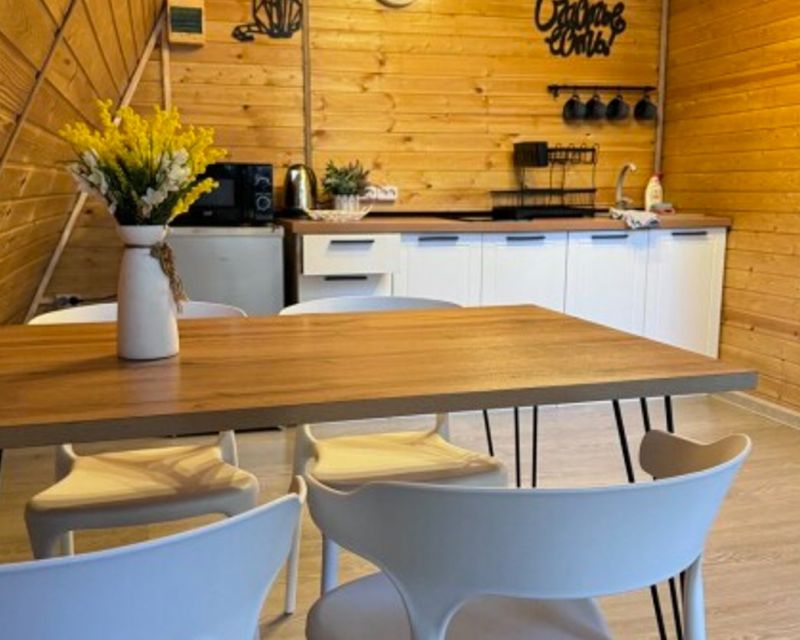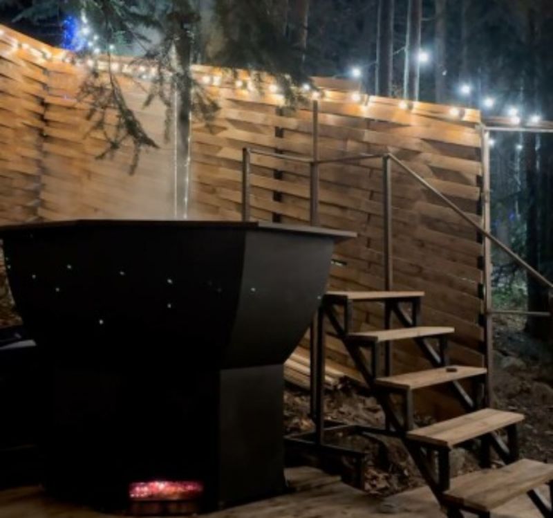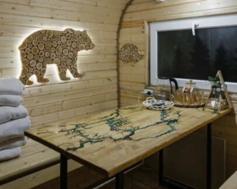 Гости отеля могут дополнительно заказать расслабляющие процедуры: баню, прогретый горячий чан или освежающую холодную купель. Для маленьких гостей предусмотрена безопасная игровая площадка. На территории отеля также есть место для костра, где можно провести вечер за приятными беседами, и зона ресепшн, где вас встретят и помогут с заселением.
